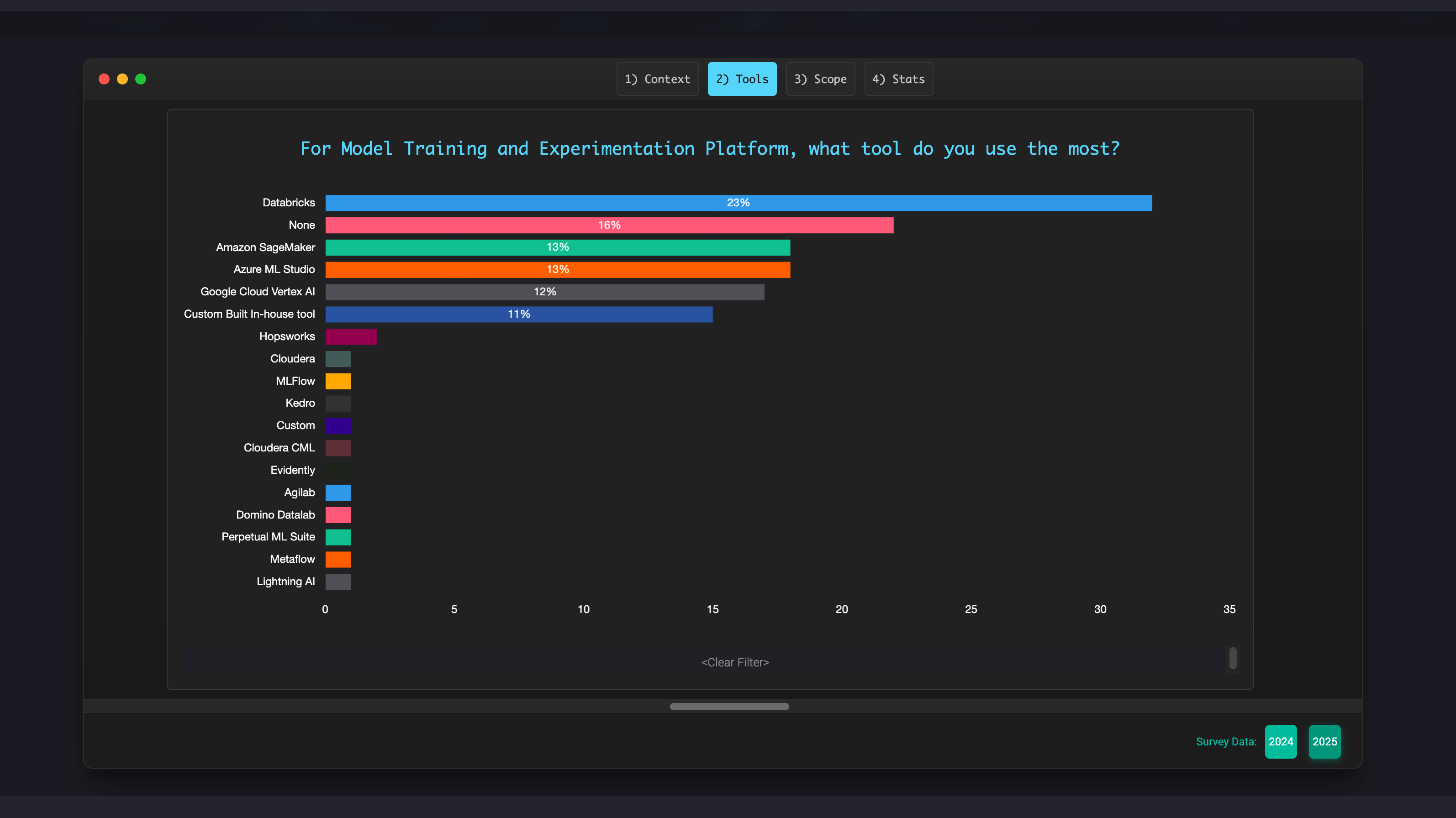 The results for the Survey on Production MLOps are out: ethical.institute/state-of-ml-2025 🚀🚀🚀 As part of the release we have updated the interface enabling real time toggling between 2024 and 2025 data, and have refreshed a cool new code-editor theme 😎 Check it out and share it around!! |
