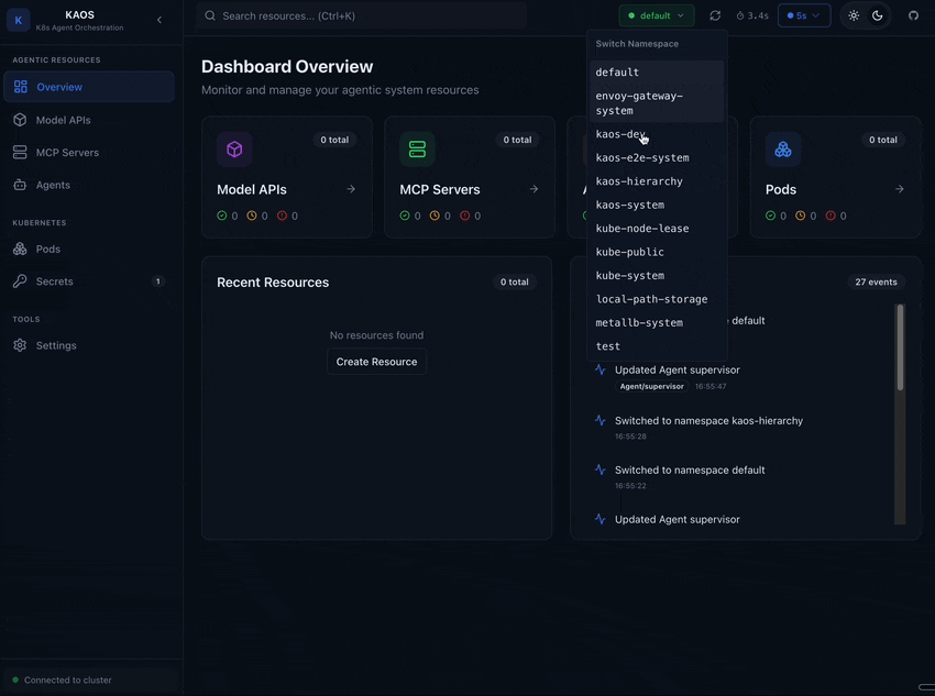 Super excited to release the K8s Agent Orchestration Framework (KAOS) to help manage distributed agentic systems at scale 🚀 The KAOS Framework addresses some of the pains of taking multi-agent / multi-tool / multi-model systems to hundreds or thousands of services! It started as an experiment to build agentic copilots, and has progressed as a fun endevour building distributed systems for A2A, MCP Servers, and model inference! The initial release comes with a few key features including: 1) a golang control plane to manage Agentic CRDs; 2) a python data plane that implements a2a, memory, tool / model mgmt; 3) a React UI for CRUD+debugging, and; 4) a robust CI/CD setup with KIND/pytest/ginko/etc. I have to say I am impressed on the level of abstraction that is possible to reach with agentic copilots when covering frameworks and domains I have experience in, a blog post will follow on this topic specifically! For the meantime do check out the repo, docs and examples to try it out - if you have any feedback or run into issues please do submit an issue! |